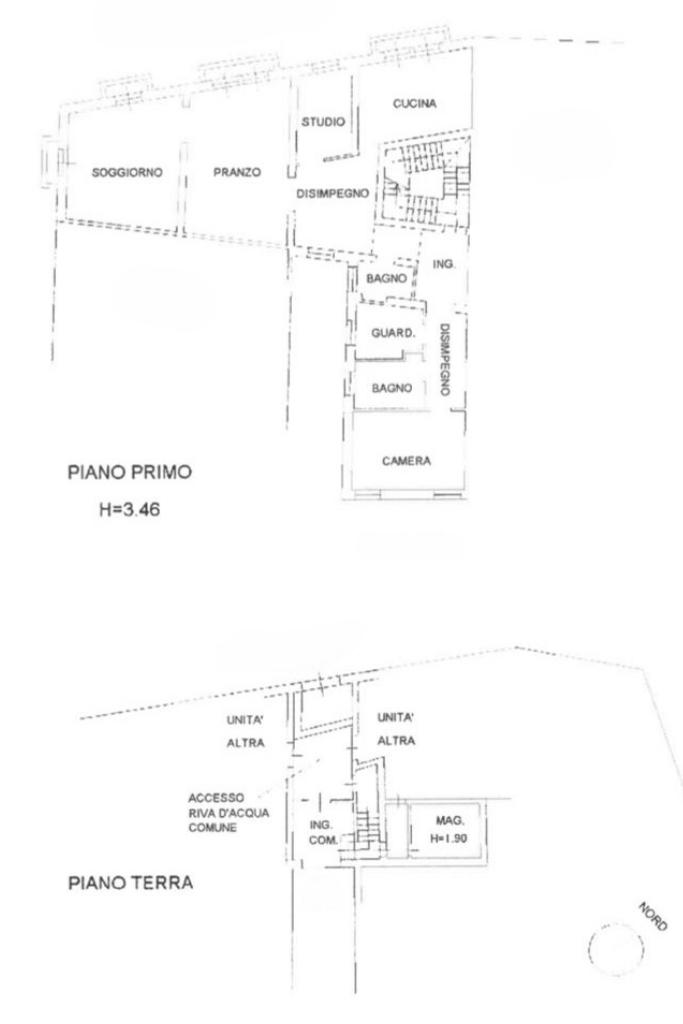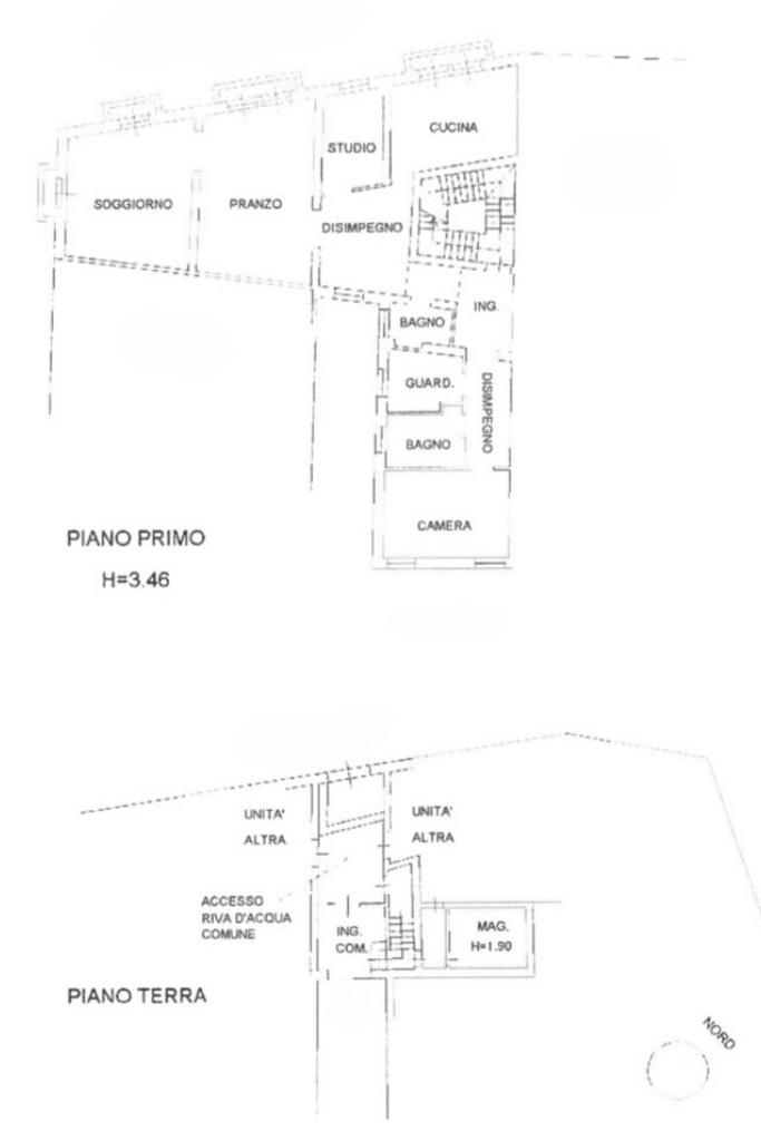 L'appartamento è caratterizzato da quattro balconi e dodici finestre che rendono l'immobile luminoso; ed è esposto sul canale, da due lati. E' collocato al primo piano, è composto da una zona soggiorno e pranzo di 60 metri quadri circa, continuando troviamo la cucina abitabile, c'è la possibilità di arrivare ad avere fino a quattro camere da letto ed ha due bagni.