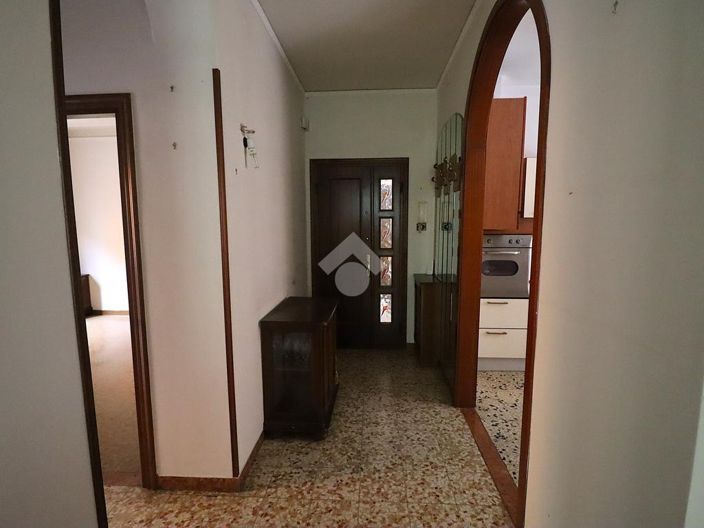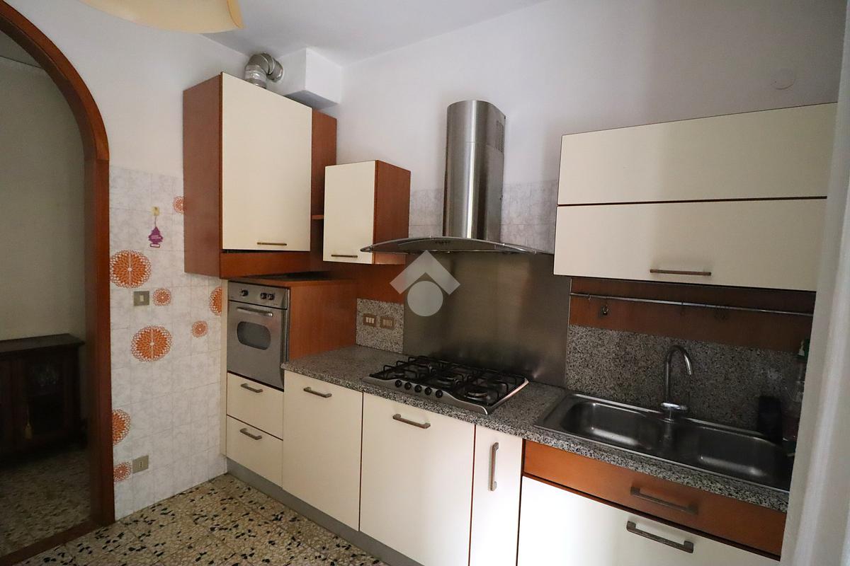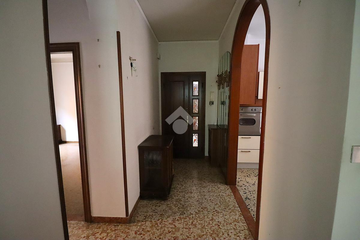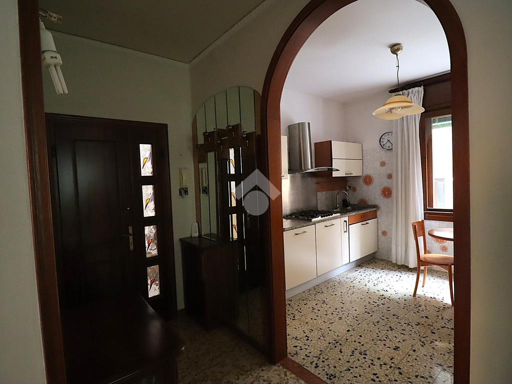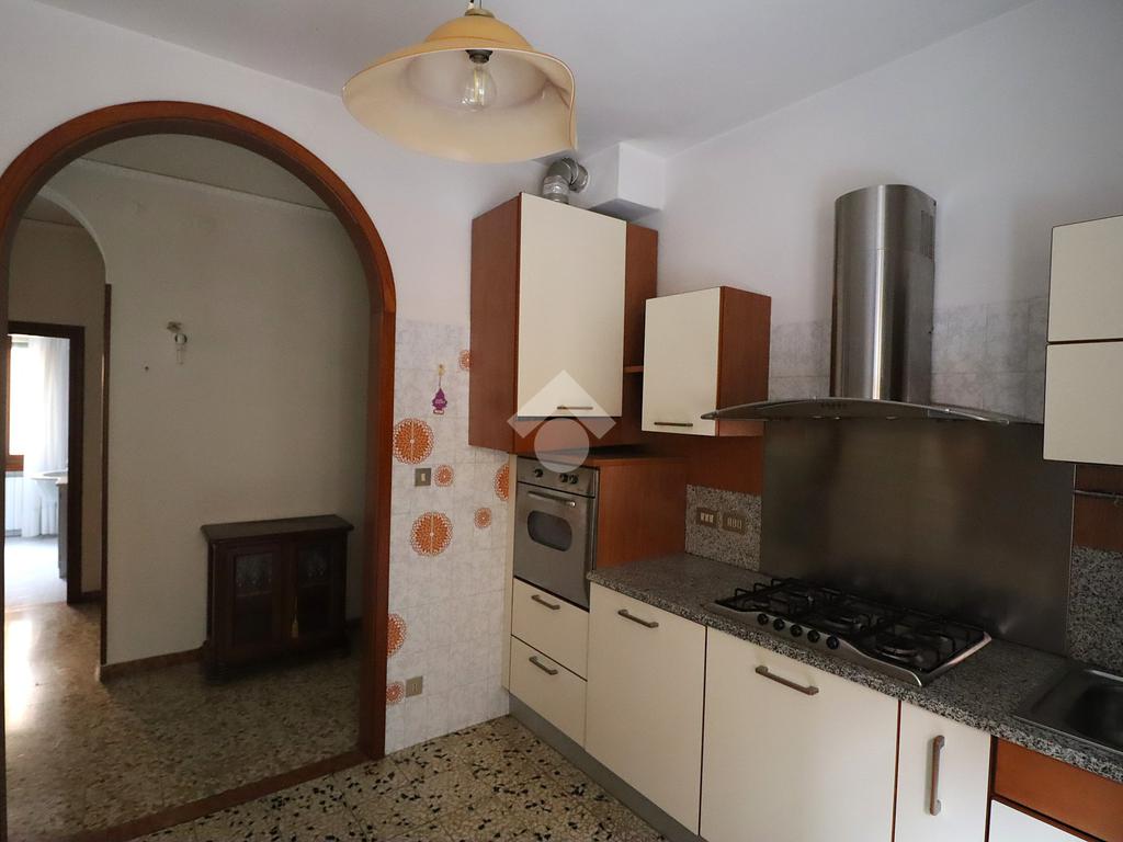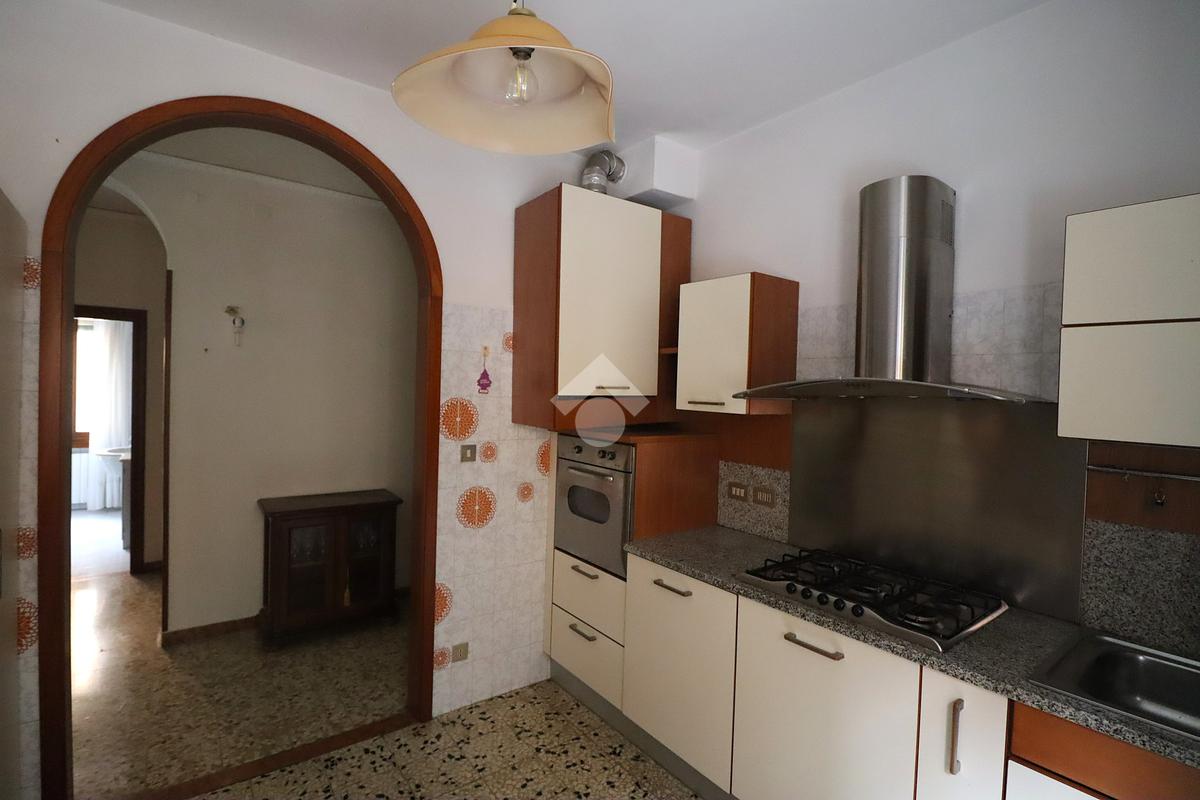 L'immobile si apre su una cucina abitabile, seguita da un soggiorno. Un disimpegno collega la zona notte composta da bagno finestrato con box doccia, camera matrimoniale e camera singola. Una seconda camera singola è accessibile direttamente dal soggiorno.