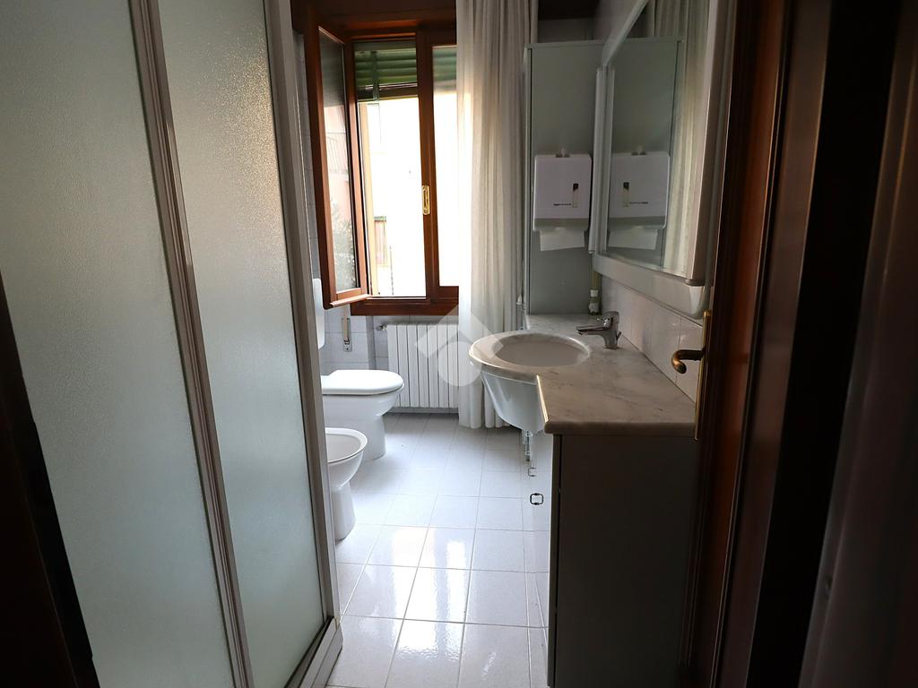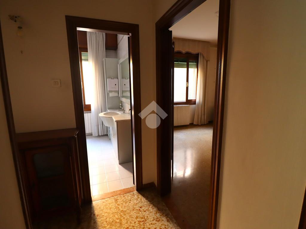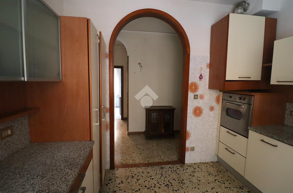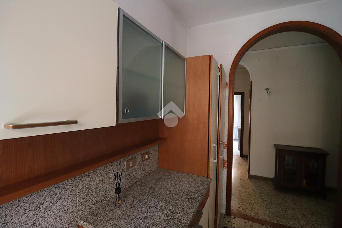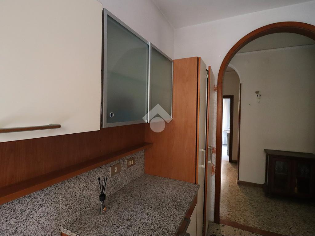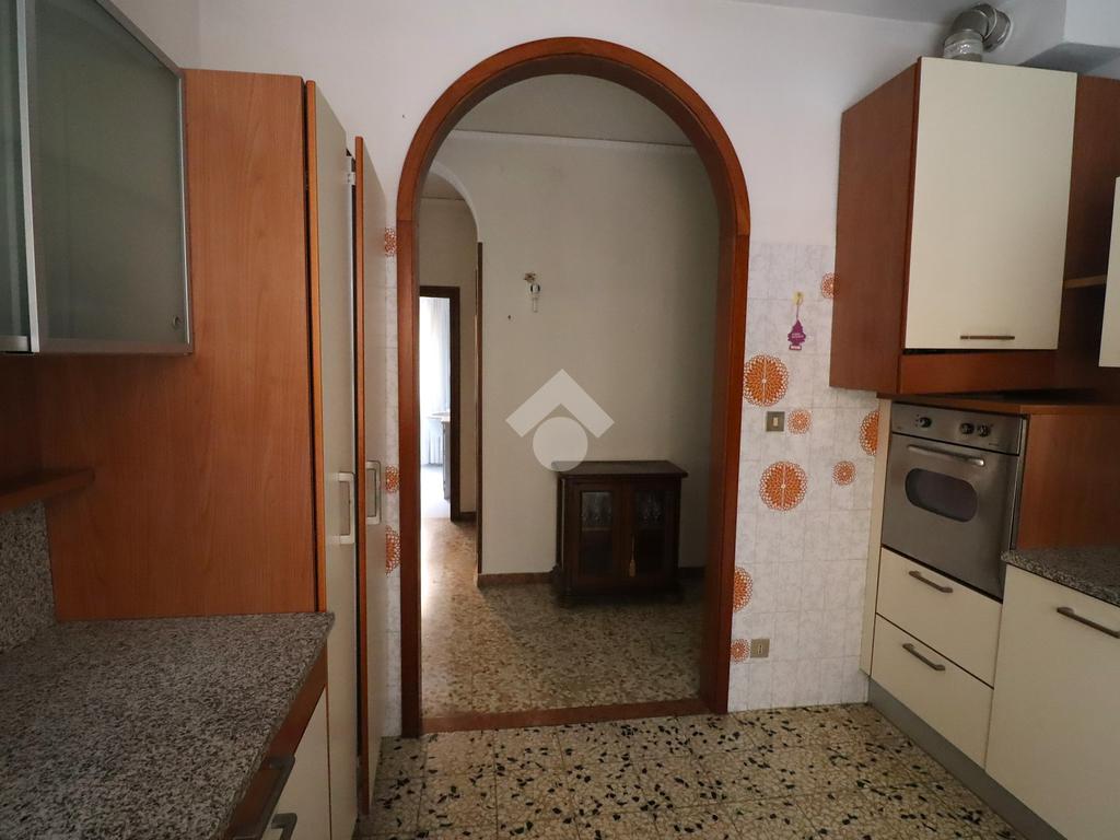 L'immobile si apre su una cucina abitabile, seguita da un soggiorno. Un disimpegno collega la zona notte composta da bagno finestrato con box doccia, camera matrimoniale e camera singola. Una seconda camera singola è accessibile direttamente dal soggiorno.