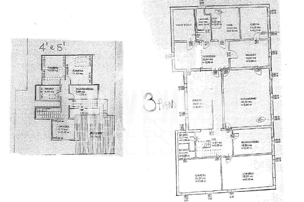 L’immobile si sviluppa al terzo piano, dove troviamo la zona giorno con sala da pranzo e cucina. Proseguendo ci dirigiamo nella zona notte dove troviamo le camere da letto e la scala che ci porta al quarto piano mansardato offre invece una zona notte aggiuntiva, composta da tre camere da letto, un guardaroba, un bagno e la possibilità di realizzare una splendida terrazza/altana, elemento di grande pregio e fortemente caratteristico delle abitazioni veneziane.