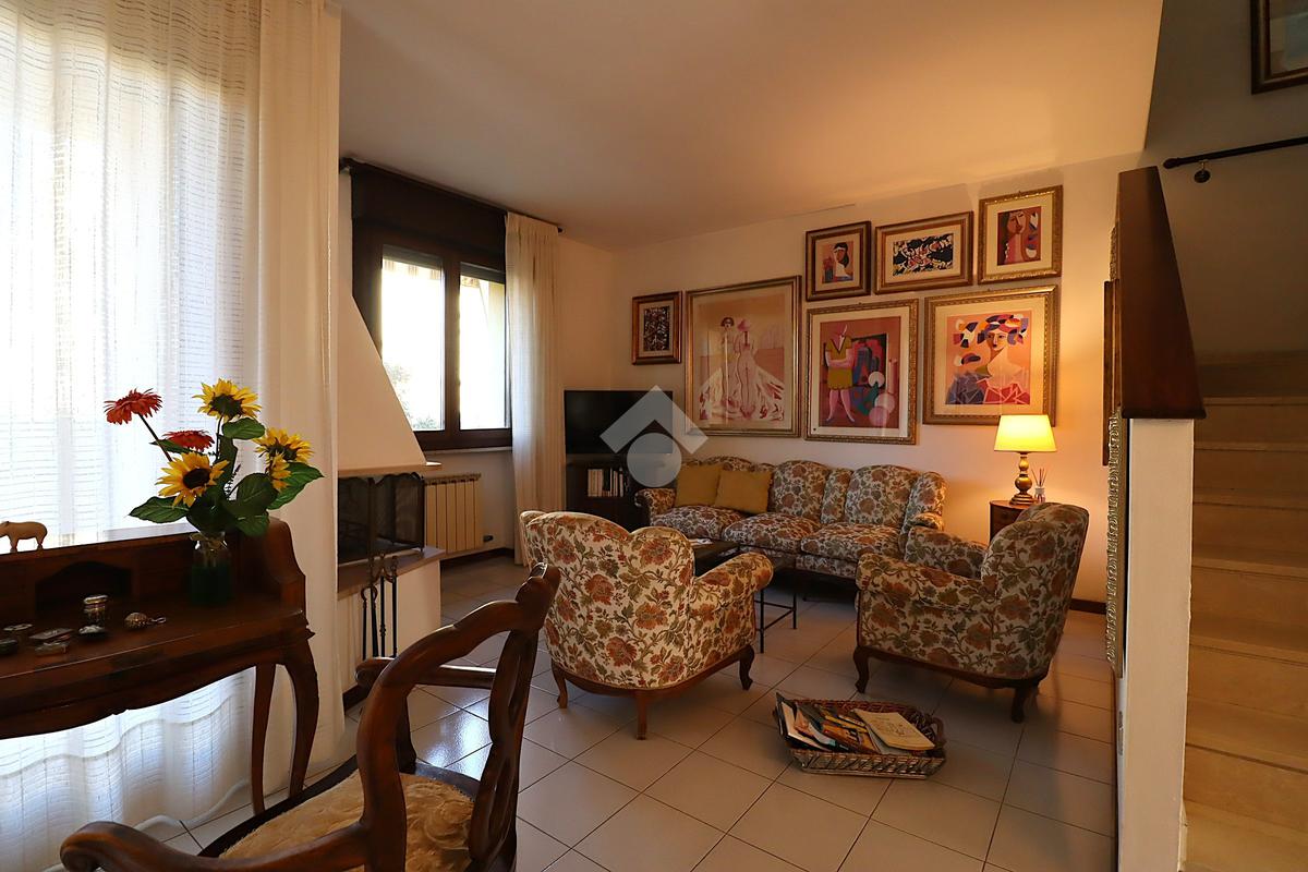 La distribuzione degli spazi è al piano terra abbiamo un ampio soggiorno climatizzato con caminetto, cucina abitabile luminosa, antibagno con doccia e lavabo che separa il locale WC. Al primo piano troviamo una camera matrimoniale climatizzata, camera singola, salotto/studio con possibilità di ricavare un ulteriore posto letto, bagno finestrato con vasca, disimpegno con armadio a muro e zona lavanderia.