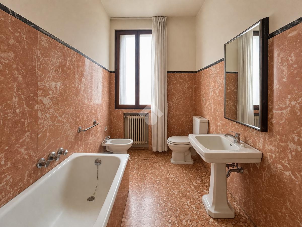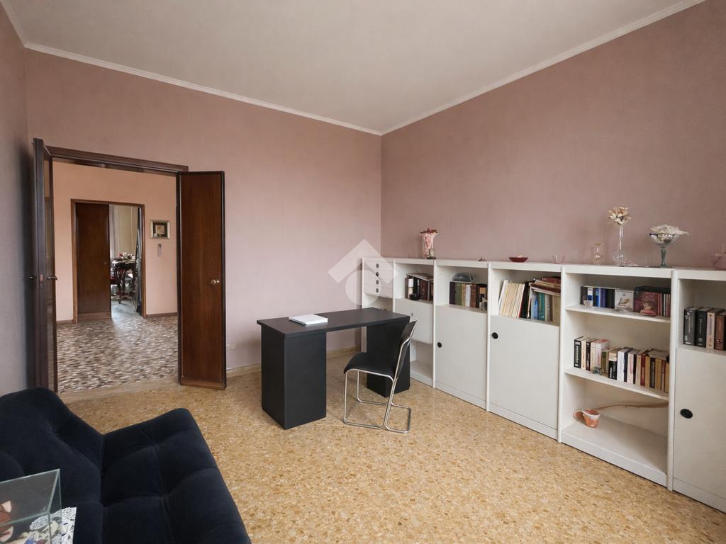 Dall’andito si sviluppa in modo funzionale la distribuzione degli ambienti, che comprendono un soggiorno, uno studio, due camere da letto di generose dimensioni e una sala da pranzo. La cucina è separata e dispone di accesso a un terrazzo interno, oltre a una stanza di servizio utilizzabile come lavanderia o ripostiglio.