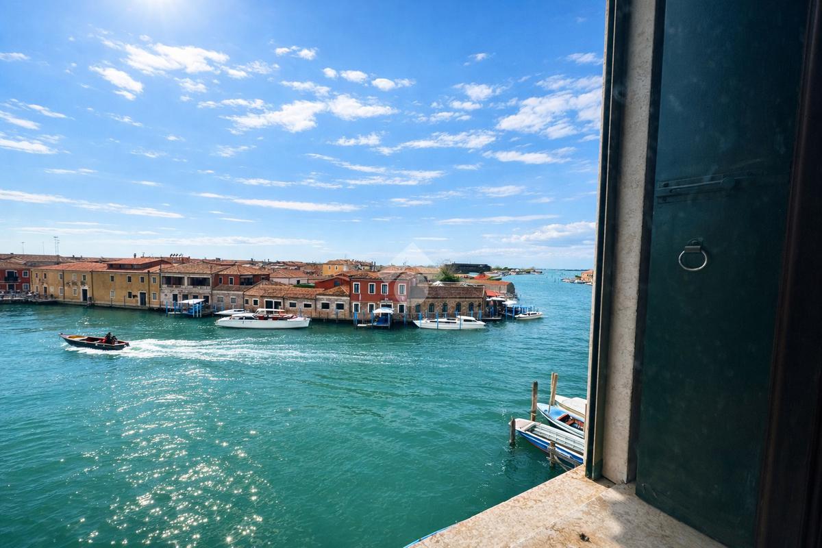 Varcata la soglia d’ingresso si accede a un ampio andito, ben illuminato grazie alle grandi finestre e alla porta finestra con accesso al poggiolo, dal quale si gode di una vista aperta sul Canal Grande di Murano.